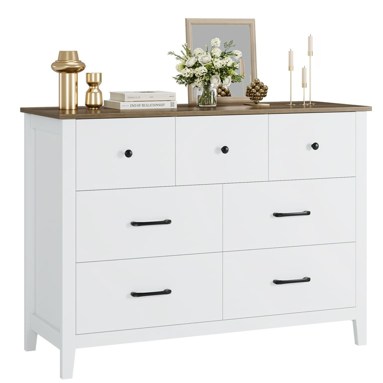 Gosalmon 7 Drawer White Dresser 30 1 In H X 48 4 In W X 15 4 In D Wf288862nyyaaw The Home Depot